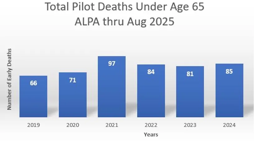 There has been a 40% increase in early pilot deaths (before retirement age) since 2021.