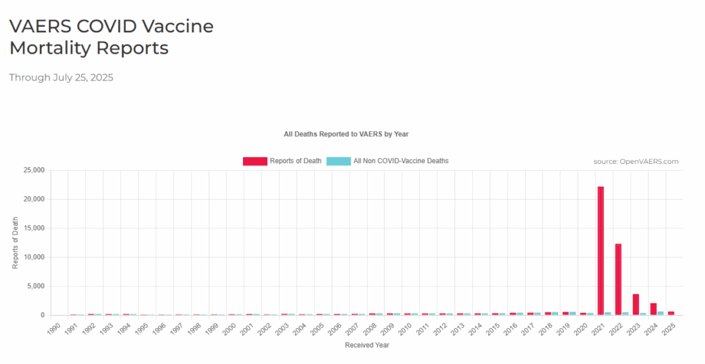 August 26 – A study out of Japan is published in Science, Public Health Policy and the Law titled, “Regulatory and Safety Assessment of COVID-19 mRNA-LNP Genetic Vaccines in Japan: Evidence for Revocation of Approval and Market Withdrawal.” The researchers wrote in part, “[t]he genetic vaccines that received special approval for emergency were widely recommended for administration as a public health measure during the COVID-19 pandemic, with approximately 103.46 million people in Japan (79.5% of the population) receiving the genetic vaccine. Despite numerous reports of health injuries both domestically and internationally as of June 2025, the Japanese government has not conducted a nationwide health injury survey into these adverse health effects [sound familiar?]. These vaccines were approved without adequate non-clinical testing and long-term safety evaluation, and administration continued without sufficient disclosure of adverse events… It is evident that genetic vaccines that received special approval for emergency by the Japanese government lack sufficient evidence of efficacy, and their potential risks to public health cannot be overlooked. A comparison with previous cases of pharmaceutical approval revocations indicates that revoking the approval and withdrawing genetic vaccines from the market is not only reasonable but also necessary.”