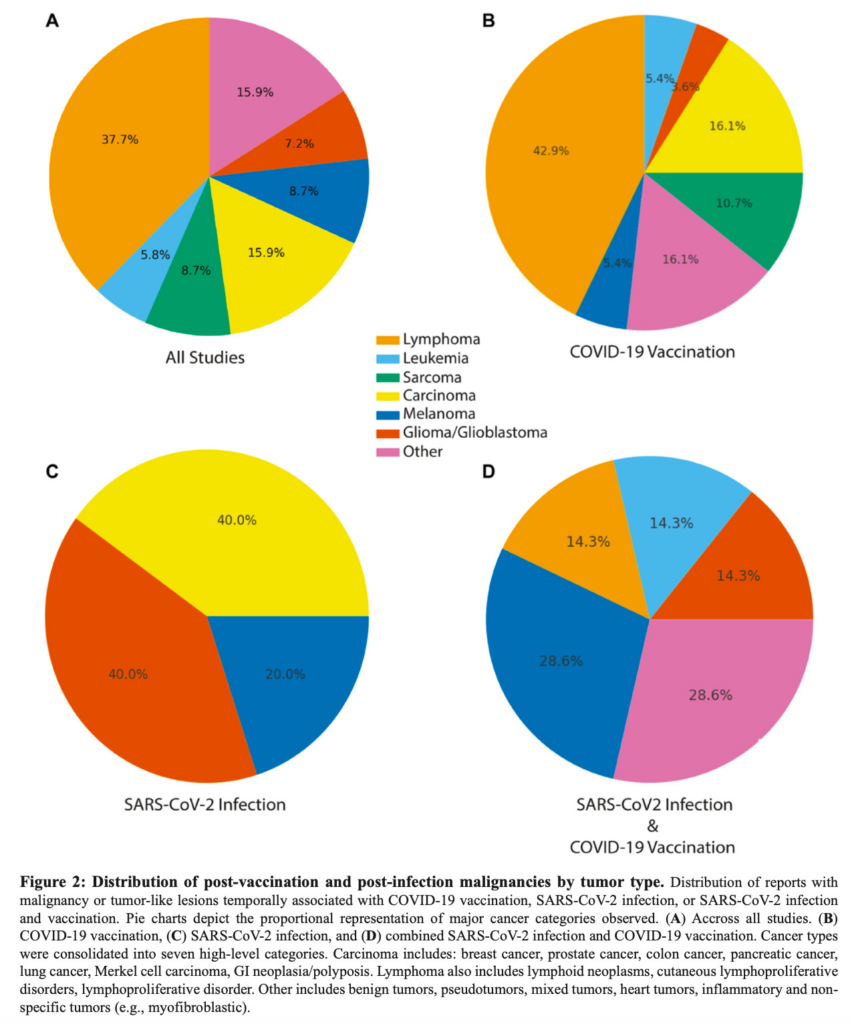 January 3 – A study is published in Oncotarget titled, “COVID vaccination and post-infection cancer signals: Evaluating patterns and potential biological mechanisms.” After conducting a search through multiple databases for COVID-related cancer cases written about between January 2020 and October 2025, researchers found 66 case reports (articles), 69 peer-reviewed publications, and 2 population-level cohort studies that identified 333 individual cancer cases occurring in 27 countries. Among COVID vaccine-associated cases, lymphoma was the most common (43%). Approximately 50% of the diagnoses occurred within 2-4 weeks of vaccination, with some occurring within 7-14 days, and others emerging after 2-6 months.