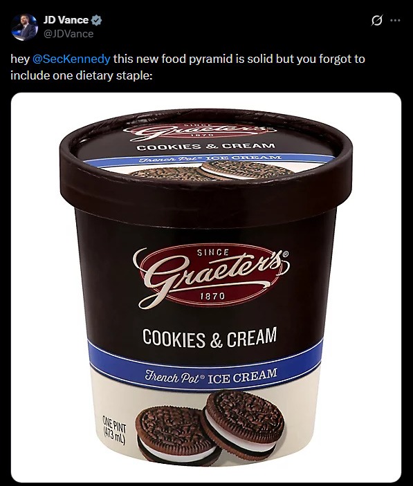 In response to the new guidelines, Vice President JD Vance took to X to crack wise and plug a Cincinnati, Ohio-based ice cream company…