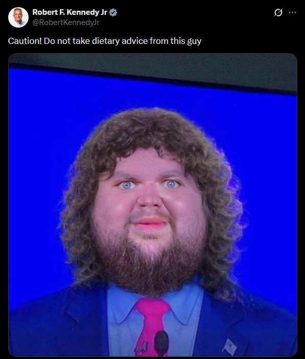 HHS Secretary Robert Kennedy played along, and sent back a hilarious message which included the very popular JD Vance meme depicting him as fat with long curly hair…