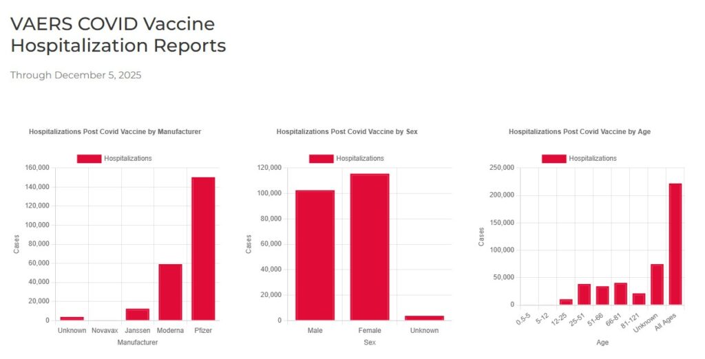 COVID “vaccine” hospitalizations reported to VAERS as of 12/5/25